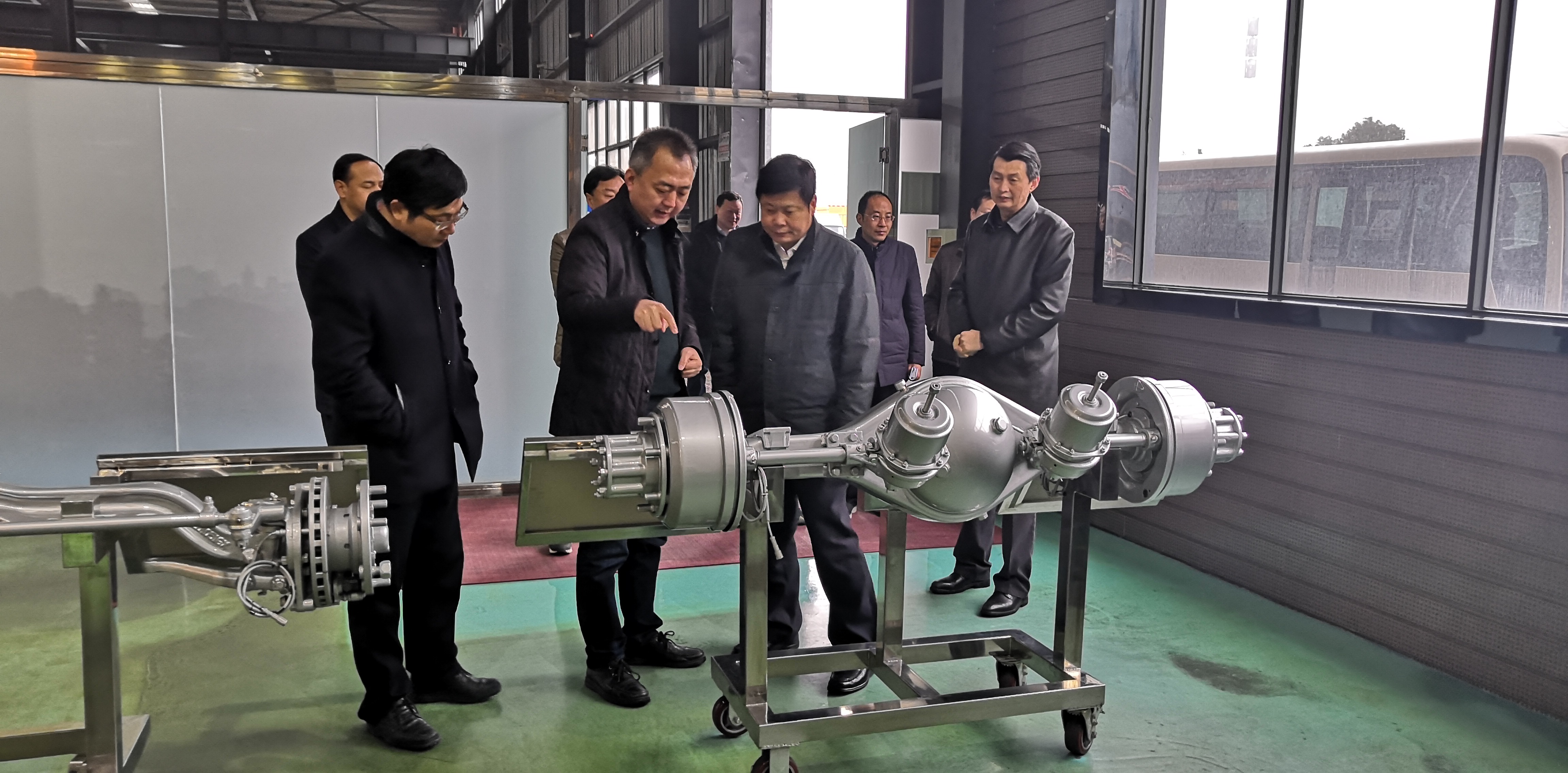 陳新武參觀了公司電子車橋展廳、生產車間及新能源車電驅動系統生產線、實驗室,并不時詢問公司的經營生產現狀。
